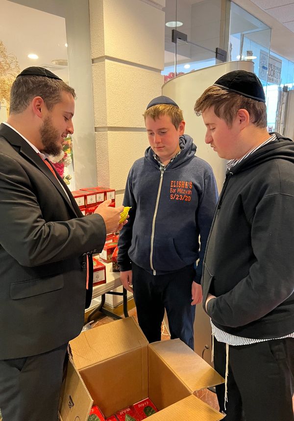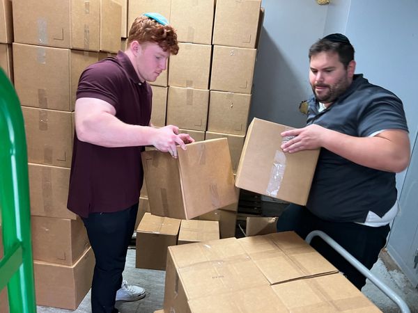 Helping the JCCRP pack and deliver boxes for Holocaust survivors for Rosh Hashanah.